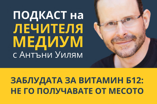 А дори и да приемате Б12 чрез храната, възможно е той да не е активен и усвоим. Тялото ви може да не успее да го използва ефективно и той да бъде изхвърлен чрез урината. Често ни се казва, че получаваме витамин Б12 от месо, пиле, агнешко, пуешко, мляко, яйца, сирене, свинско, масло, сьомга, раци, скариди, миди и стриди. Да, тези храни съдържат Б12 – но истината е, че не можем да го усвоим ефективно поради редица причини (повече за това изгледайте епизода на подкаста). Най-важната от тях: телата ни сами създават Б12 – и това е именно формата, която поддържа организма ни. Това се осъществява благодарение на специални микроорганизми, които Антъни Уилям нарича повърхностни биотици . Те се намират дълбоко в чревния тракт и са отговорни за синтеза на Б12. Проблемът е, че почти никой в съвременното общество не разполага с достатъчно от тези микроорганизми и следователно не произвежда собствен Б12, а вместо това разчита на животински източници. Всички животни произвеждат собствен Б12, специфичен за техния вид, но нашето тяло не може да използва ефективно животинската форма. Растителните храни също не съдържат Б12, така че и веганите, и хората, консумиращи месо, в крайна сметка не получават Б12 от храната си.