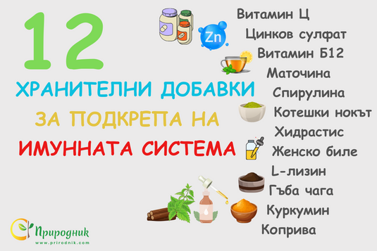 Спирулина: укрепва имунната система, като същевременно премахва токсичните тежки метали и спира растежа на патогените, което облекчава имунната система. Повече за тази хранителна добавка можете да научите от статията “Хранителни ползи и лечебно действие на спирулината”.