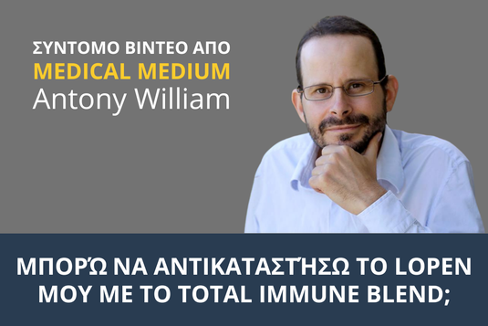 Τις τελευταίες εβδομάδες γίνεται πολύς θόρυβος σχετικά με το γεγονός ότι ο Anthony William αφαίρεσε αρκετές μάρκες από τον κατάλογό του με τα συνιστώμενα από αυτόν συμπληρώματα διατροφής. Προς το παρόν δεν υπάρχει επίσημη ενημέρωση από τον ίδιο για τους λόγους και αυτό οδήγησε σε πολλές εικασίες και υποθέσεις στο διαδίκτυο. Δεδομένου ότι πολλοί από εσάς μας στείλατε ερωτήσεις για διάφορα προϊόντα που έχετε χρησιμοποιήσει και με ποια συγκεκριμένα μπορείτε να τα αντικαταστήσετε, σε αυτό το σύντομο βίντεο ο Anthony William απαντά προσωπικά σε μια ερώτηση σχετικά με την αντικατάσταση του l-ορνιθίνης με το Total Immune Blend της Vimergy.