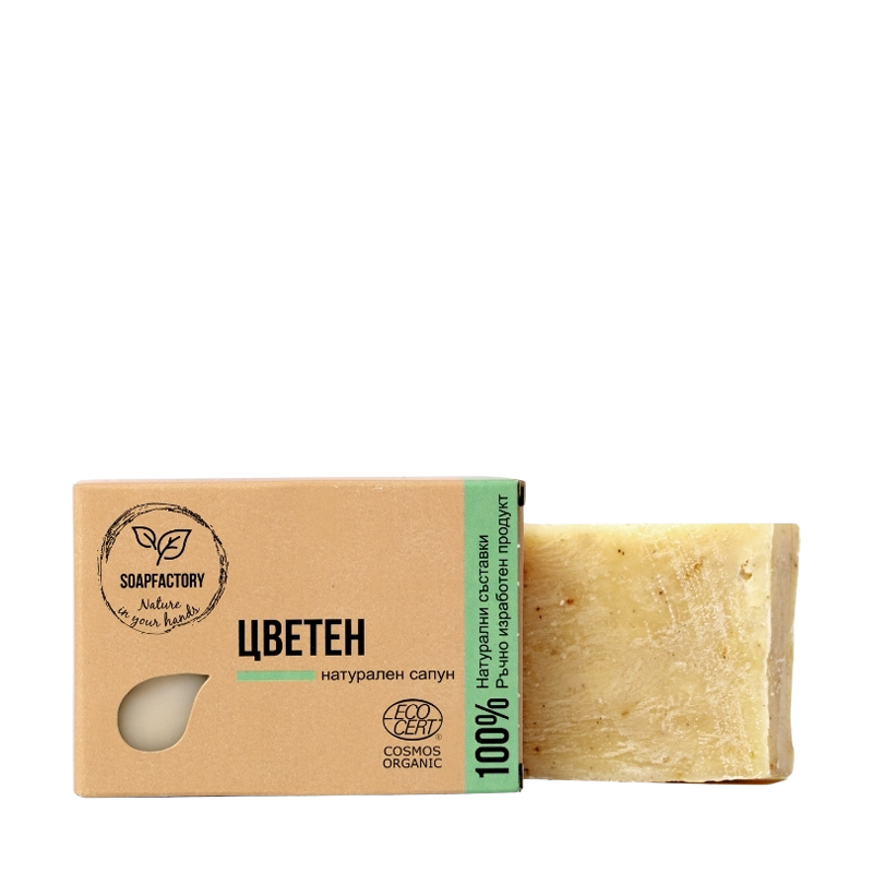 INCI: Cocos Nucifera (Coconut) Oil, Olea Europaea Fruit (Olive) Oil, Aqua, Sodium Hydroxide, Ricinus Communis Seed (Castor) Oil, Helianthus Annuus Seed (Sunflower) Oil, Prunus Amygdalus (Almond) Dulcis Oil, Butyrospermum Parkii (Shea) Butter, Σακχαρόζη (ζάχαρη), έλαιο Pogostemon Cablin Leaf (πατσουλί), έλαιο Cananga Odorata Flower (Ylang-Ylang), έλαιο Cymbopogon Schoenanthus (λεμονόχορτο), έλαιο Calendula Officinalis Flower, σκόνη Urtica Dioica Leaf (τσουκνίδα).